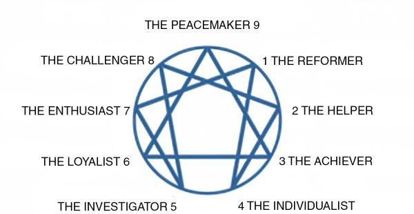 A 9-pointed geometric symbol represents the nine types, the enneagram, that depicts how each type is interconnected with others and is used for self-discovery, personal growth, and improved relationships: