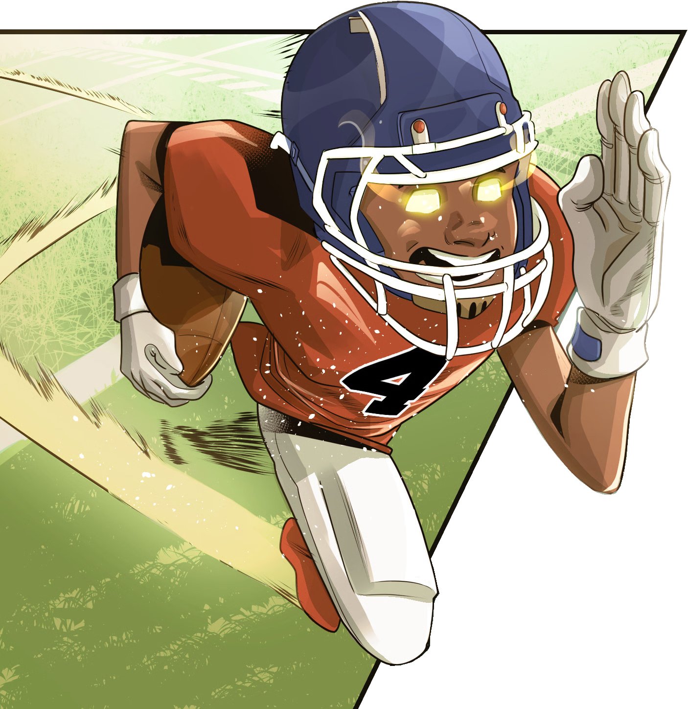 There are scenes and beats in the comic pulled straight from my Saturdays — the walk to the stadium, the mental switch before kickoff, the feeling of lining up against an opponent who underestimates you. Those moments are reimagined in Jeremonstar as high-stakes, anime-style battles, but the emotion and energy come right from the real thing.