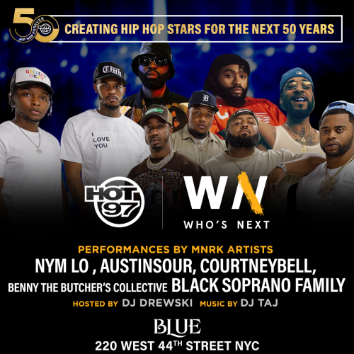 MNRK Music Group’s emerging stars – Austin Sour, Nym Lo, Courtney Bell, and Black Soprano Family – will team up with NYC’s home for Hip-Hop, HOT 97, as their flagship “Who’s Next” showcase returns to the esteemed venue Blue Midtown on February 28th.