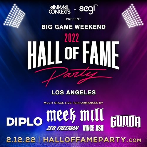 Just hours before the Rams take on the Bengals during the Big Game at SoFi Stadium, Headliner and Hip Hop Superstar Meek Mill, world famous DJ & Grammy award winner Diplo, and current chart topping Hip-Hop artist Gunna will electrify the audience with amazing performances from multiple stages! Zen Freeman will also DJ the event, and emerging rap artist Vince Ash will showcase his talents!