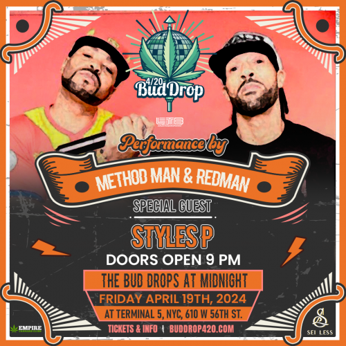 The 4/20 BUD DROP concert at Terminal 5 is poised to blend music, culture, and the spirit of 4/20. It invites everyone to join for an unforgettable night as Redman, Method Man, Styles P, and the entire LTB Productions and Sei Less team unite to craft an experience that pays homage to the cannabis holiday in the heart of New York City.