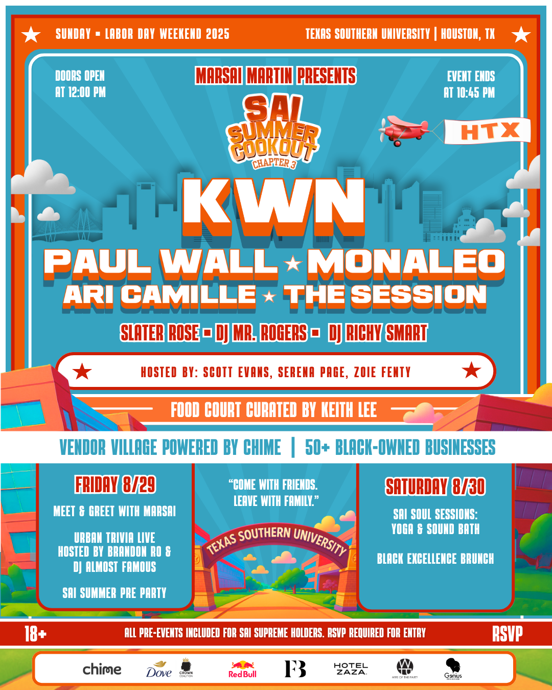 The Sai Summer Cookout will return Aug. 29-31, 2025, at Texas Southern University, bringing three days of music, food, and community programming.